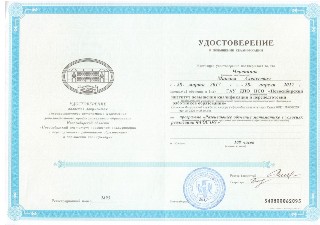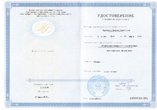 Удостоверение о повышении квалификации по программе "Образование обучающихся с ОВЗ в условиях реализации федеральных государственных образовательных стандартов" (с 12.03.2018 по 31.03.2018, 108 ч)